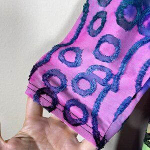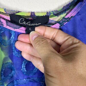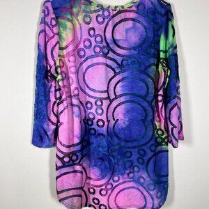 Caleaas Women's 3/4 Sleeve Circle Raised Print Tunic Top Colorful Large!
