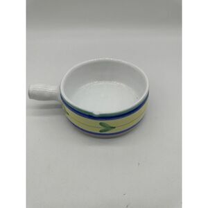 Caleca Italy Ceramic Bowl w/ Handle Hand Painted Dip or Soup Baking Bowl 9 x 3"