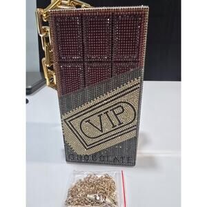 Caleesa Chocolate VIP Crystal Crossbody Clutch/Handbag/Clutch Multicolor Crystal-Embellished Top Snap Closure