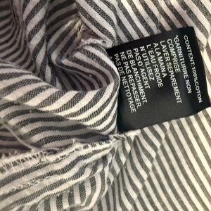 Beautiful Caleoa embroidered tunic top in a lightweight black and white pinstripe cotton. Features vibrant multicolor embroidery on the front, sleeves, and back yoke. Designed with a split neckline, ¾ bell sleeves, and a relaxed tunic fit. Perfect for boho festival style, vacation, or everyday casual wear.