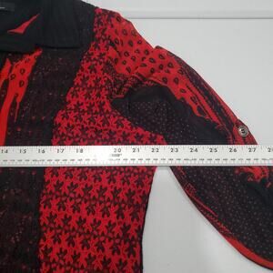 Caleoas Shirt Womens XL Red Black Lace Sheer Tunic Button Front 3/4 Sleeve Boho