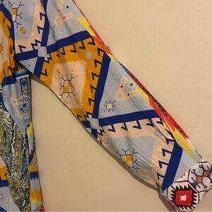 Caleoas Women’s M Tunic Top Shirt Mixed Pattern Button Up Pockets Boho