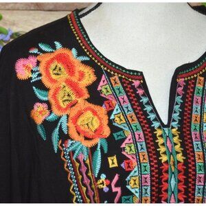 Caleooa Black Boho Embroidered Floral Pullover Blouse Top Plus Size 3X Tunic