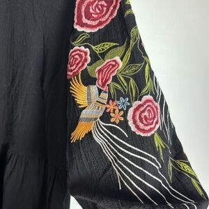 Caleooa Embroidered Floral and Bird Peplum Top size M
