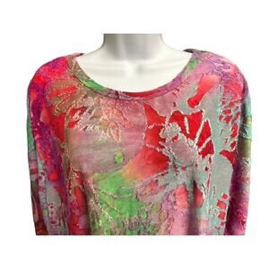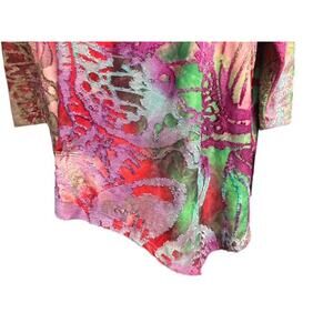 Calessa 1X Top Fuchsia Multicolor Fancy Burnout Velvet Abstract Asymmetric Hem