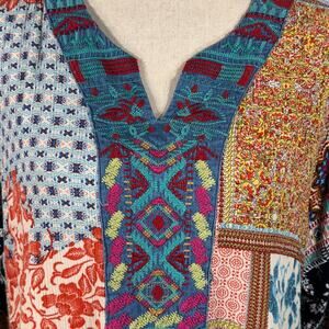 Calessa 2X-Large Tunic Top Embroidered Split V-Neck Floral Stretch 3/4 Sleeves