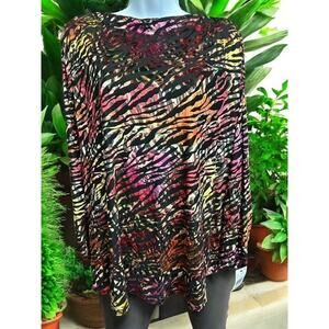 Calessa 3X Top Orange Black Red Crimson Multicolor Velvet Striped Stretch Lined
