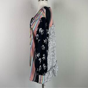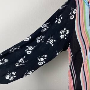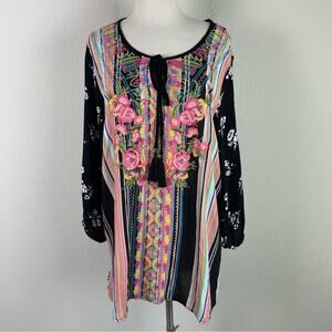 Calessa Black Floral Embroidered Mixed Media Pop Over Tunic Top xl