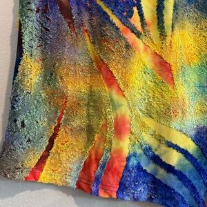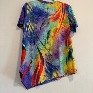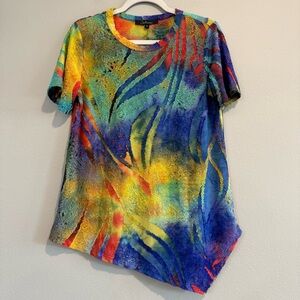Calessa Colorful Abstract Top Short Sleeve Tie Dye Asymmetrical Hem Artsy Small