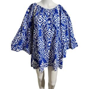 Calessa Scoop Neck 3/4 Flare Sleeve Blue/ White Women's Pullover Blouse Large. Condition is New with tags. Shipped with USPS Ground Advantage.