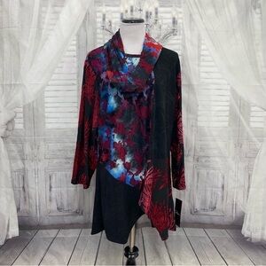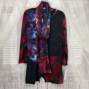 Calessa Size 2X Patchwork Tie Dye Burnout 3/4 Sleeve Asymmetric Tunic Scarf NEW