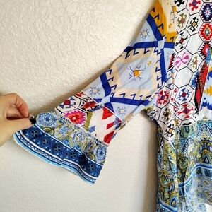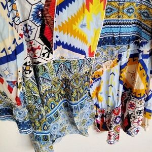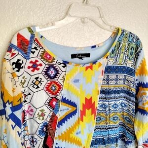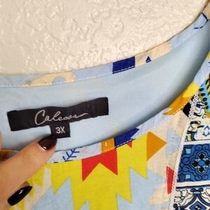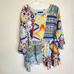 Calessa Top Mix Southwest Button Up Tunic Blouse Boho Art to Wear sz 3X