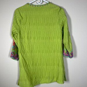 Calessa Women's 3/4 Bell Sleeve Lime Green Embroidered Floral Top Small!