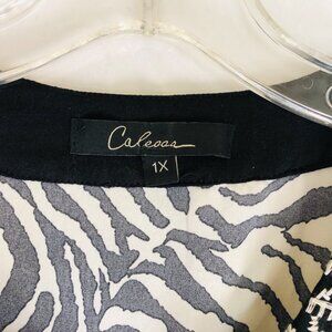Calessa Women's Plus Size 1X Embroidered Zebra Animal Pattern Tunic Top
