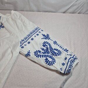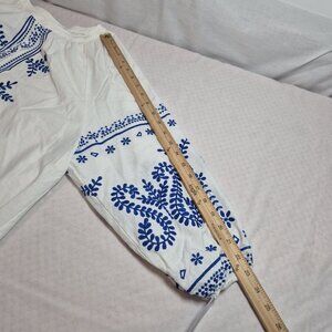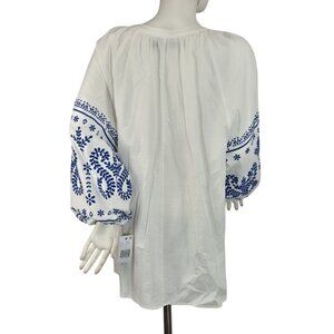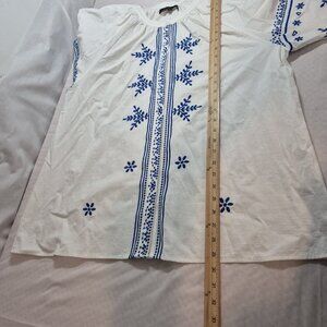 Calessa Women's Size XL White Blue Embroidered Crew Neck 3/4 Sleeve Tunic (27)
