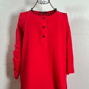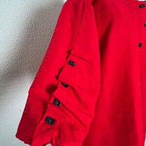Calessa Womens Plus Size Tunic with 3/4 Buttoned Sleeves, 3 Button Round Neckline, Hidden Side Pockets 1X