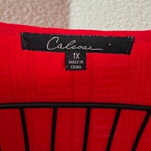 Calessa Womens Tunic 3/4 Sleeves, 3 Button Round Neckline, Side Pockets 1X