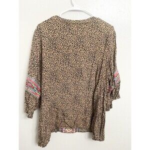 Calessa top Size 1x embroidered floral animal print aztec festival peasant art