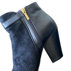 Calf Hair Stacked Heel Booties Black Leather Womens Sz 7