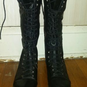 Only worn a few times. These are just like combat boots just higher up your thigh. These are great everyday shoes and great winter boots. This tie up boot will bring your style together!