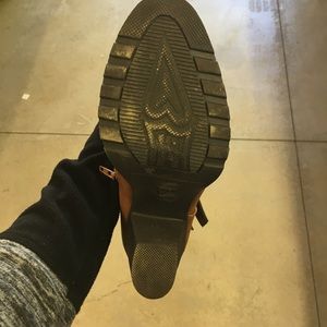 Size 10, 3 1/2 inch heal. Light brown boot with dark brown straps. Zips on inside. Scuffed on inside of left boot (as seen in picture). Nothing wrong with boots, was just too big of a size.