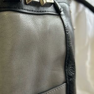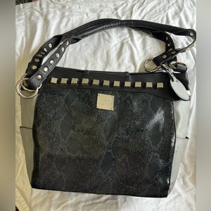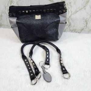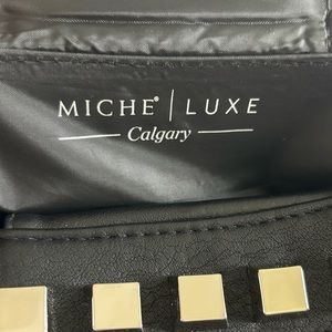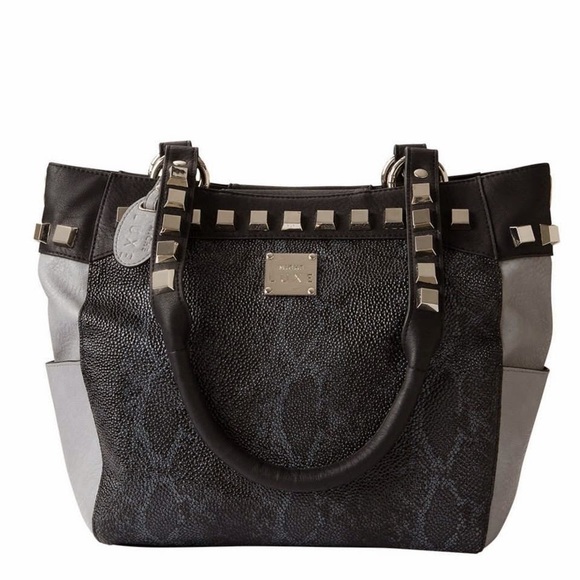 This Miche Luxe design is rocker chic done right. And who doesn’t like to feel a little dangerous sometimes? The Calgary features exotic black and grey stingray-textured faux leather on both sides with a subtle snakeskin print overlay. Side panels in smooth grey and charcoal-black collar with oversized stud detailing bring this stunning look together. Comes with matching studded handles, key fob and dust cover. Silver hardware; side pockets.