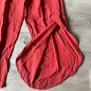 Cali 1850 Linen Blend Tulip High Waisted Pants Rust Red Orange Beach Summer S