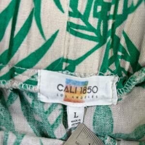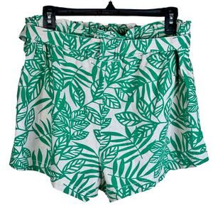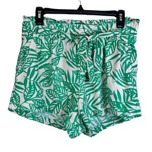 Cali 1850 Shorts Large Paper Bag Elastic Waist Floral Green White Linen Viscose