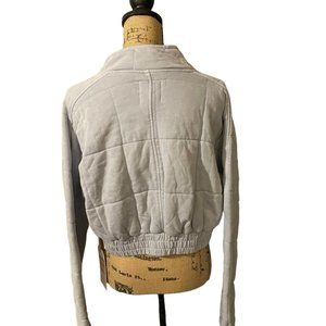 Cali 1850 Sweater Crop Jacket in a size medium. New with tags. Cropped. Laying flat pit to pit 23in. Length is 18in. Zips up. Light purple blue color.