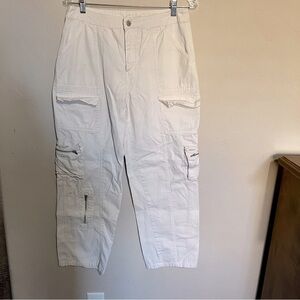 Cali 1850 White Modern Tech Look Wide Leg Baggy Cargo Pants