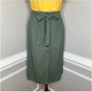 Cali 1850 Women's Olive Button Front Linen Blend Skirt with Attached Belt Size S