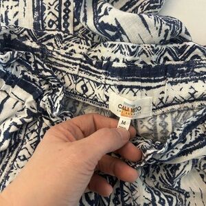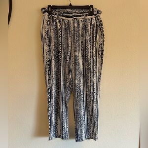 Cali 1850 linen blend high rise pants- blue and white-linen/viscose