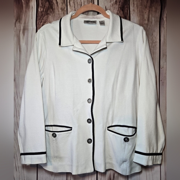 Cali And York Chic White Blazer with Black Trim Womens Medium