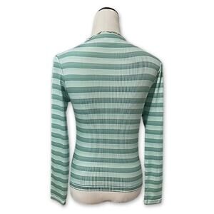 Cali Be Casual Top Long Sleeve Mock Neck Lettuce Edge Ribbed Stripe Blue M NWOT