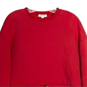 Cali Be Nordstrom XL Fleece Crop Sweatshirt Drawstring Bright Red Cinching NWT