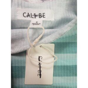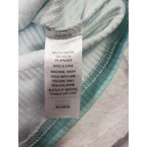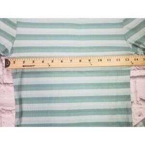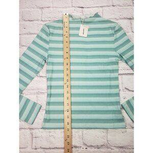 Cali Be Womens Long Sleeve Mock Neck Top Ribbed Green White Size Small.