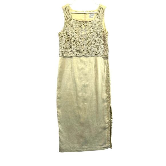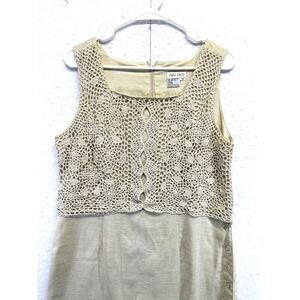 Cali Cali 100% Linen Lined Women Sleeveless Midi Dress Boho Tan