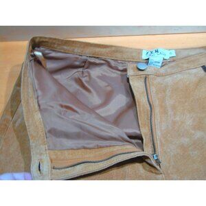 Cali Cali Suede Pants Color is Camel with Coffee Brown Trim Front Pockets Sz 10