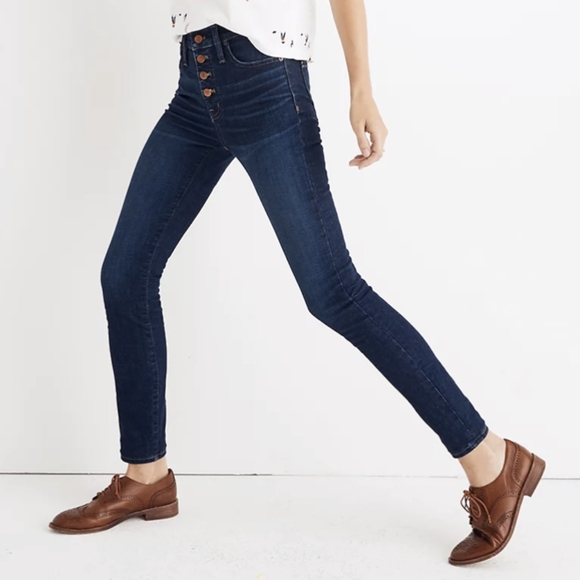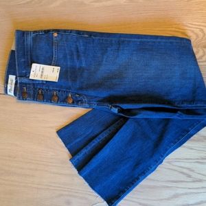 Brand new and never worn. High waisted with magic pockets. Very comfy demin material. Cut off at the ankles with light fray.