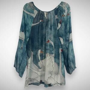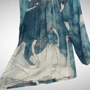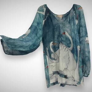 Cali Dreaming Rare Swan Silk Cotton Blend Blouse Top Flowy Size Medium Boho