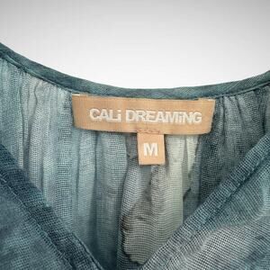 For sale is this Cali Dreaming Rare Swan Silk Cotton Blend Blouse Top Flowy Size Medium Boho. This top is in good condition with a small hole on a sleeve.