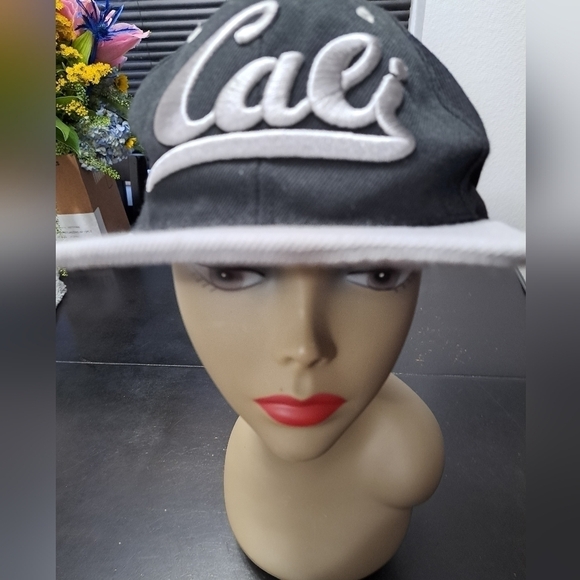 vintage silver flat bill, embroidered lettering on the front & back, adjustable snapback, 100% acrylic