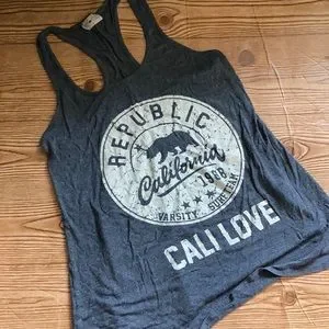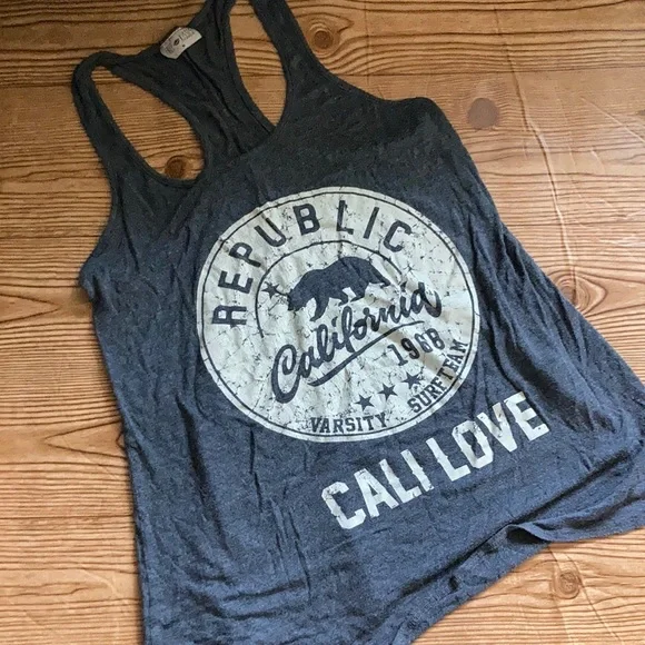Free Kisses Racerback Cali Tank, gray with vintages white lettering, size medium, super cute, EUC