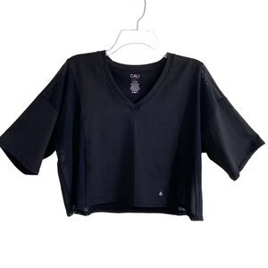 Cali Sport Crop Top Mesh Panels Black Size XL