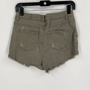 Cali Women’s Distressed Ultra High Rise Green Denim Booty Shorts size 9