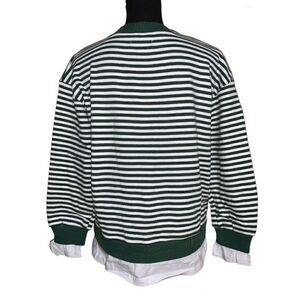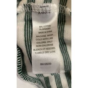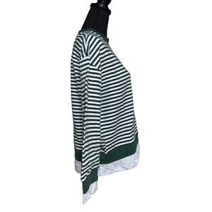 Dark green stripe twofer sweatshirt. Long sleeve. Roundneck. Stretch tee design on cuff and hem. 99% cotton/1% spandex. Size: XS. NWT.