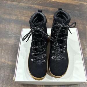 Elevate your style with these stunning black and tan boots from Calia by Carrie Underwood. The Ella model features a lace-up closure and an ankle shaft style, making them perfect for any occasion, from travel to workwear. The round toe shape and leather upper material provide a comfortable fit, while the rubber insole and leather outsole ensure slip resistance and durability.