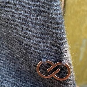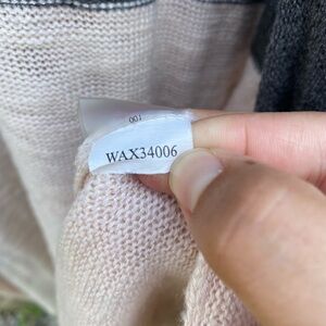 Soft, casual dark grey and cream color blocked open front cardigan with slight dolman sleeves