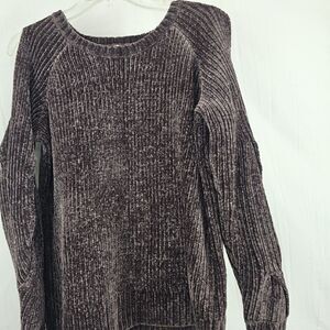 Calia Effortless Chenille Sweater Women's Size Small Brown Pullover Keyhole Cutout Cold Shoulder