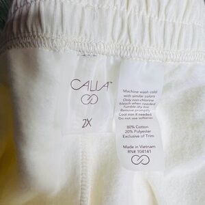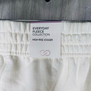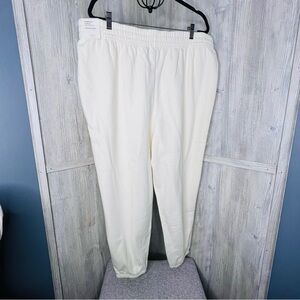 Calia Soft Cream Colored Fleece High Rise Jogger. Elastic Waist. Unbleached Cotton/Polyester Blend Fabric. Approx measurements Waist Flat 21”, Inseam 26.5